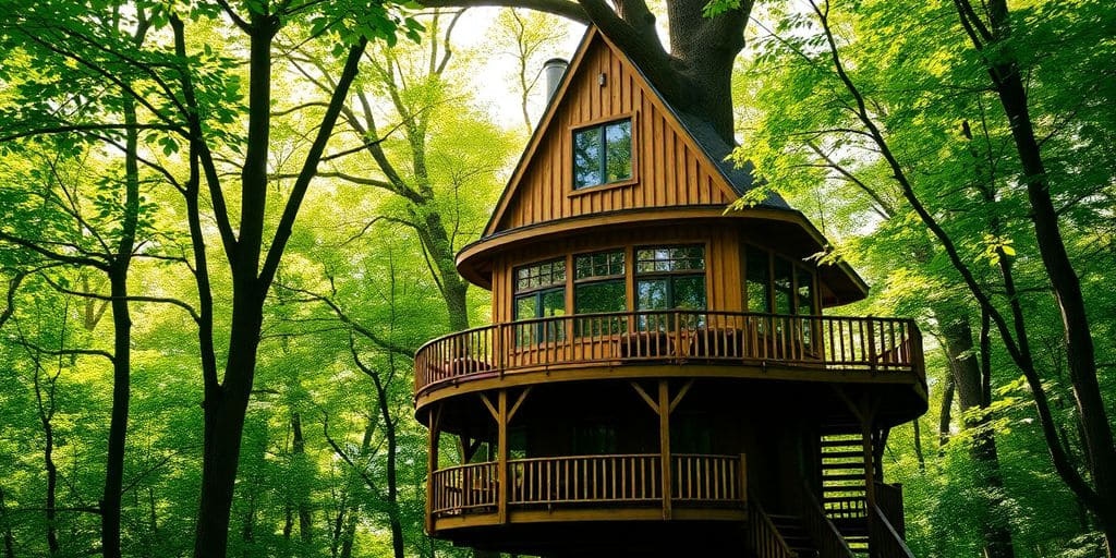 A treehouse retreat is a cozy home built in the trees, offering a unique escape in nature. It combines comfort with the beauty of the outdoors.